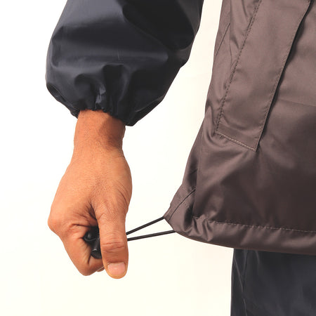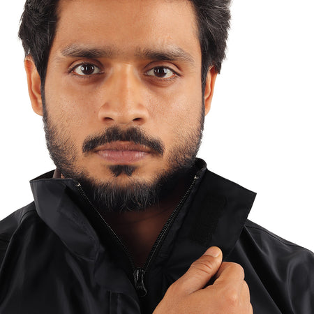 - Each garment is stitched with stitch class 300 and all exposed seams are sealed with sealing tape making the garment water proof.