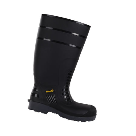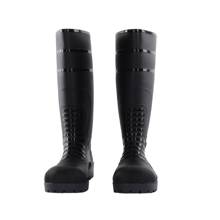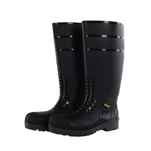 - Black PVC rain boots with 100J impact resistant with steel toe cap and excellent fitting non slippery sole